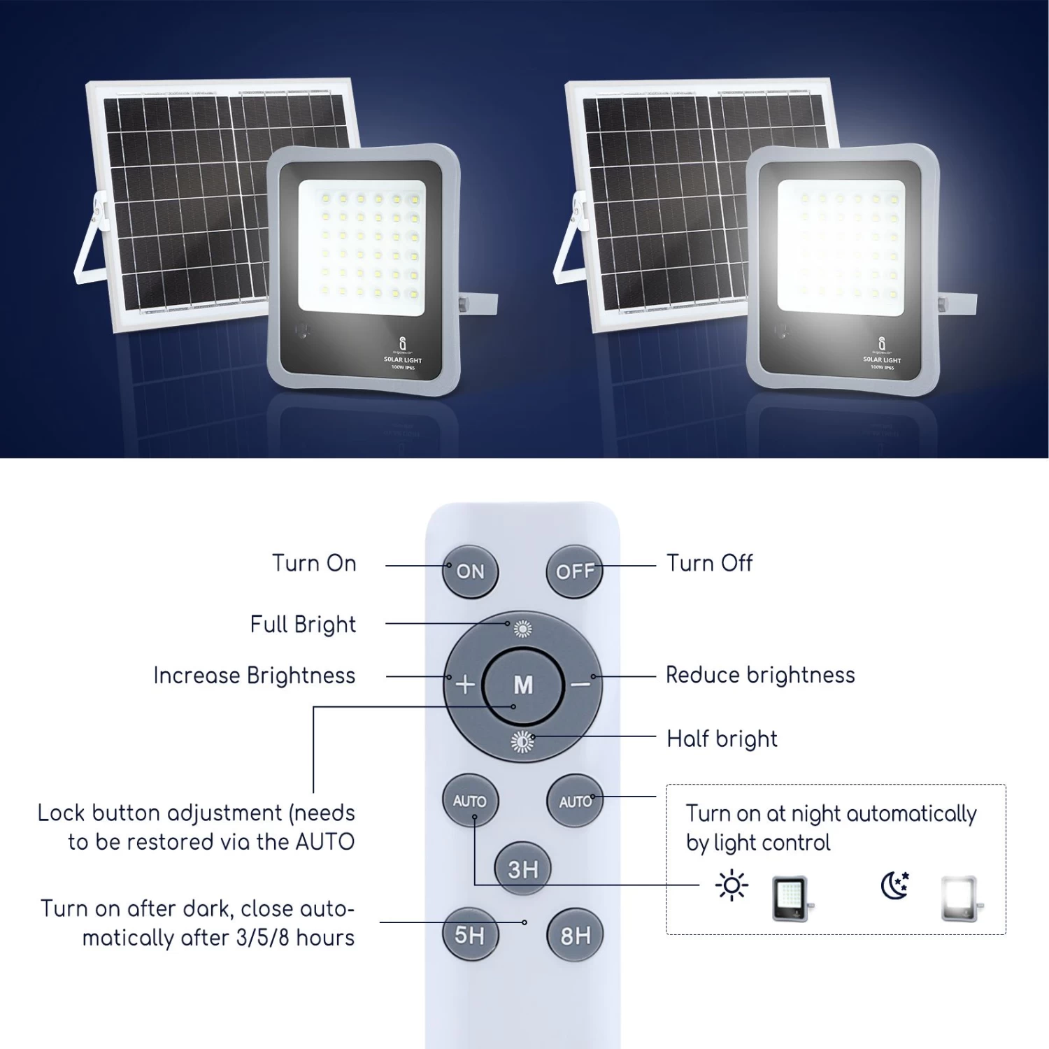 【panel solar de alta eficiencia 】 el panel solar fotoeléctrico es de alta eficiencia, transforma hasta el 23% de energía solar en energía eléctrica y su batería de iones de litio de 5000 mah, permitirá que funcione durante 10-12 horas consecutivas si se carga por completo.【carga con poca luz 】 este panel fotovoltaico aigostar está hecho de silicio monocristalino, que tiene un buen rendimiento con poca luz, alta tasa de conversión. Se puede cargar con poca luz en días de nieve y lluvia. Es ecológico y ahorra factura de electricidad.【 tecnología led 】 sus 25 luces led con chip mejorado, proporcionan una iluminación blanca fría de 6500 kelvin y una luminosidad de hasta 1200 lúmenes para iluminar cualquier rincón sin necesidad de gastos extras en la factura de la luz.【funcionamiento automático】 el foco dispone de un sensor tanto de amanecer como de anochecer lo que permite su encendido automático de noche y apagado durante el día, sin tener que programarla o preocuparse. También puede controlar el encendido/apagado y el temporizador con el mando a distancia.【protección ip65】 su protección ip65 garantiza que a lámpara es resistente al polvo, al viento y a el agua ya que está sellada herméticamente, por lo que resistirá perfectamente las inclemencias meteorológicas que se dan durante el uso en el exterior.