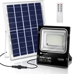 Aigostar Foco Proyector LED Solar Con Mando A Distancia, 100W, 6500K IP65