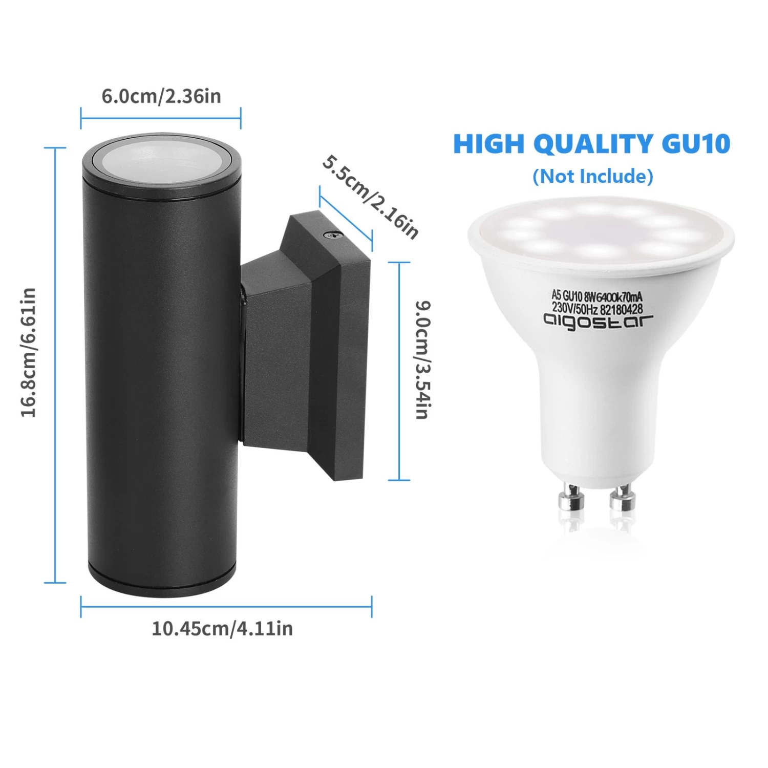 Aigostar aplique pared exterior,gu10 antracita aluminio up down lámpara,ip65 impermeable luz exterior iluminación para balcón garaje terrazas patio jardín,color negro