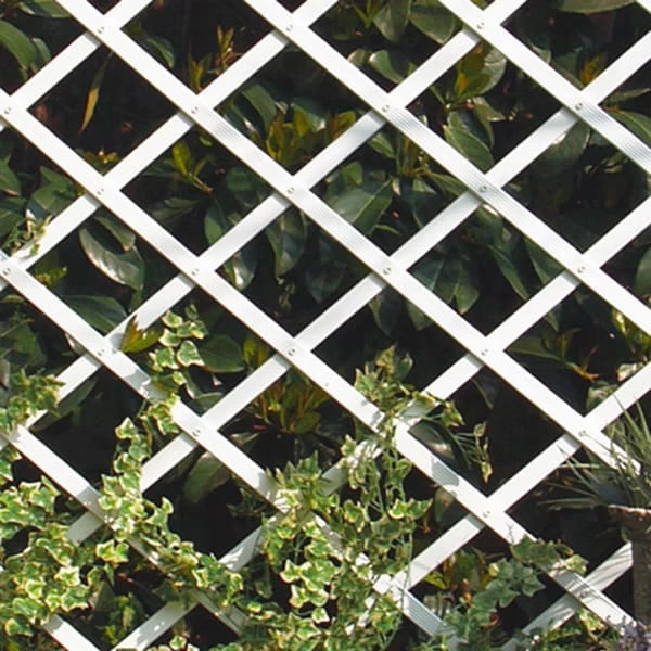 Celosía extensible de PVC en color blanco con diseño de rombos. Con este panel podrás delimitar la zona exterior de tu hogar y crear espacios íntimos para disfrutar con familia y amigos.Además, es la solución ideal para guiar plantas trepadoras o decorar una pared. El material PVC asegura mayor resistencia al desgaste, la lluvia y a los rayos ultravioleta, evitando perder su color original con el paso del tiempo.