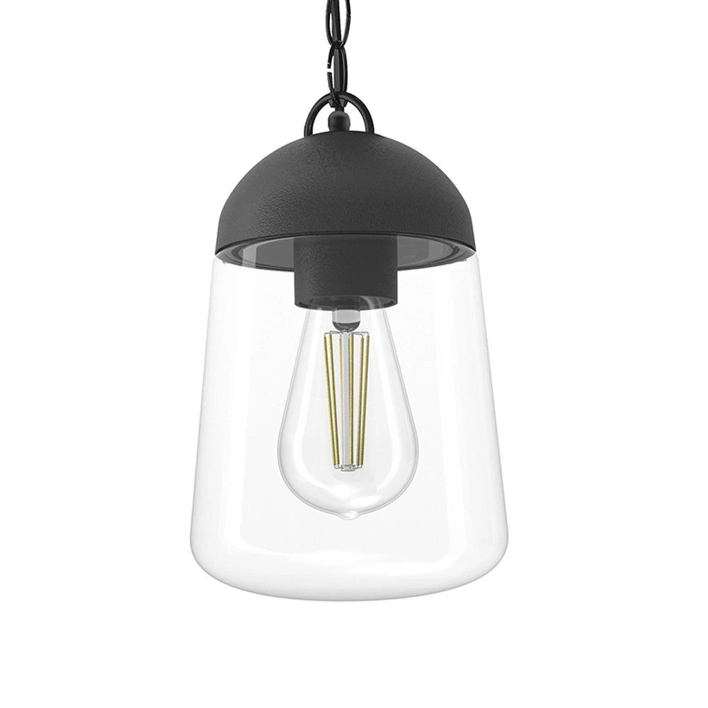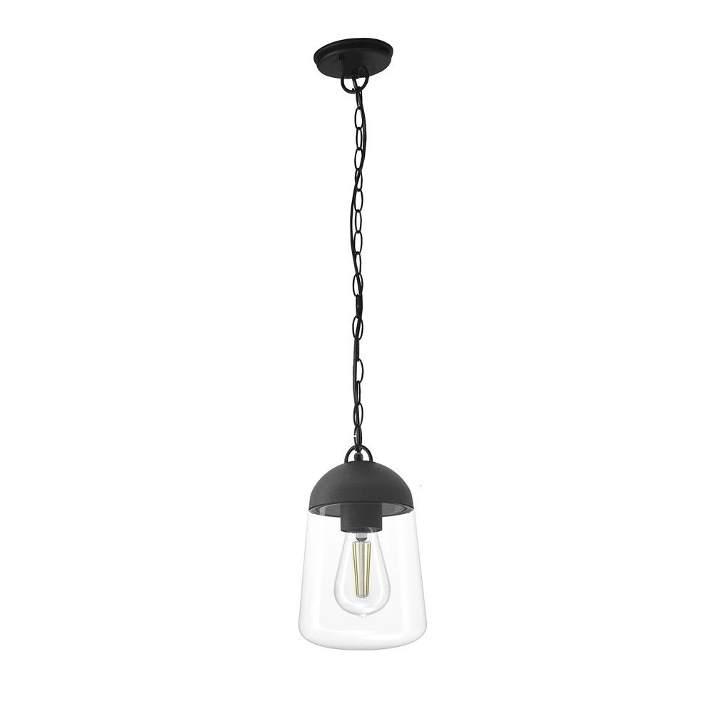 Lámpara colgante para la iluminación de porches, jardines y terrazas. La lámpara de techo new avenida está fabricada con aluminio negro mate y una tulipa de cristal transparente favoreciendo la difusión de la luz. Grado de protección ip44 frente al agua y el polvo e ik08 frente a posibles impactos.dimensiones: alto 30-80 cm. Diámetro 15 cm.