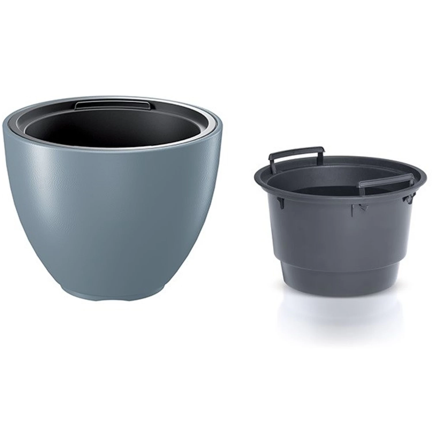 Set 2 en 1: macetero que incluye un depósito interior adaptado que reduce la cantidad de tierra necesaria.