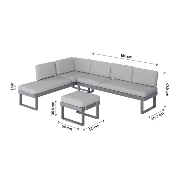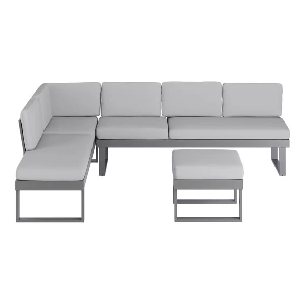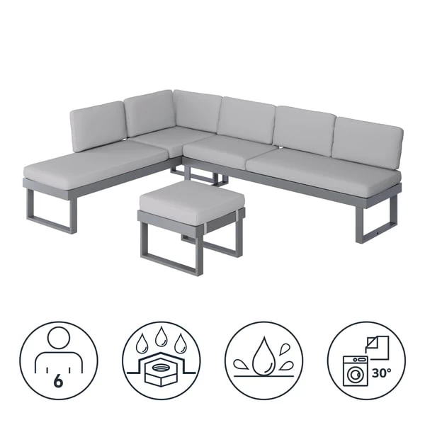 Este conjunto modular de nuestra colección de muebles de jardín Moorea es muy versátil, su sistema inteligente de 6 plazas cuenta con cada asiento multitarea transformable con solo poner o quitar el respaldo:>>La tumbona se convierte en un sofá de 3 plazas con reposabrazos. Completa tu decoración con toda nuestra colección Moorea.Con tratamiento antidecoloración para garantizar un color duradero al sol.Las fundas de los cojines se quitan fácilmente, gracias a su cremallera, para añadir a la lavadora (lavable hasta a 30 °C).El conjunto de jardín modular Moorea es resistente a la intemperie, oxidación, decoloración y al agua.Requiere montaje: accesorios y fijaciones incluidas.Color: gris acero.